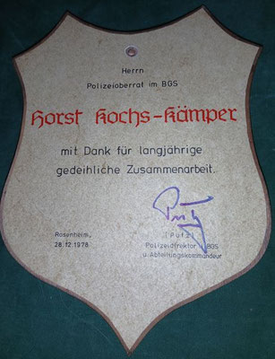 Erinnerungsplakette Bundesgrenzschutz Sachgebiet Kraftfahrwesen Goslar 25 Jahre BGS 02.01.1996