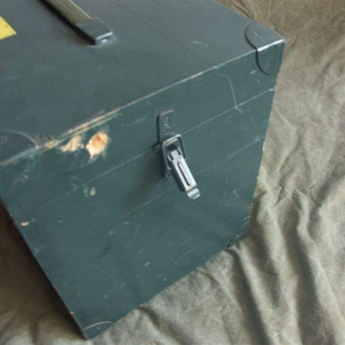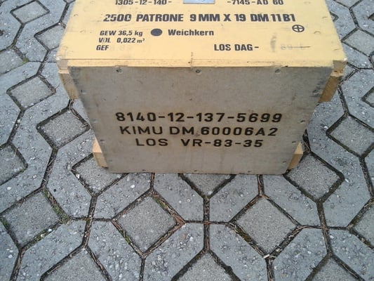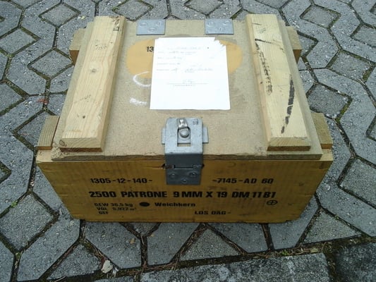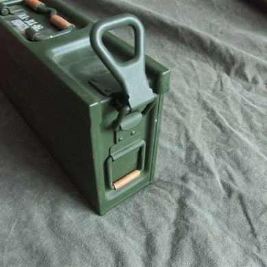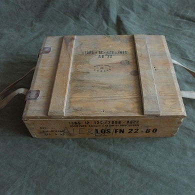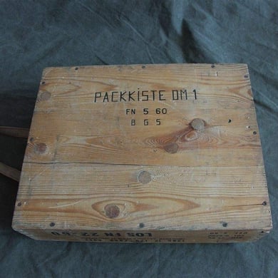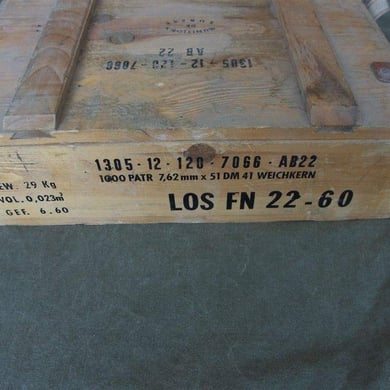Dies ist eine Original Munitionskiste in der die Munition für das G1 Gewehr (FN FAL ) vom Hersteller an den Bundesgrenzschutz ausgeliefert wurde.