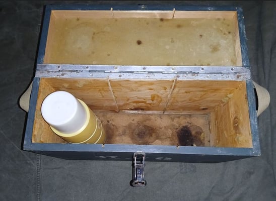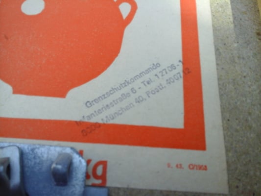 Die Streifenkisten waren im Regelfall leere Holzmunitionskisten in den die Streifenbesatzungen zusätzliche Ausrüstung wie Ferngläser, Nachtsichgeräte und oder Taschenlampen aufbewahrt haben. Hier eine markiert mit 3./- für 3. Hundertschaft