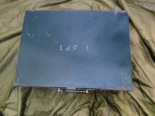 Die Kassette stammt aus dem Grenzschutzpräsidium Süd und wurde dort zur Verwahrung von Schlüsselunterlagen für den Fernmeldedienst verwendet. LdF - Leiter des Fernmeldedienstes.