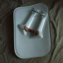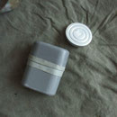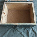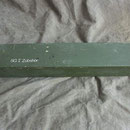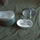 Die Butterdose betseht aus drei Teilen und wurde aus Kunststoff hergestellt. Der Deckel kann auf die Dose geschraubt werden. Die Dose verfügt über eienn Einsatz, ebenfalls aus Kunststoff und war zur sicheren Aufbewahrung von Magarine, Butter oder auch Brotaufstrich im Sturmgepäck gedacht.