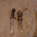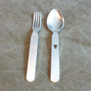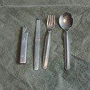Ganz oben zu sehen: der "Ökonom"ein kleiner handlicher Dosenöffner, dann das später eingeführte viertteilige Eßbesteck, hier mit der Aufschrift MdI, für Ministerium des Innern. Das vierteilige Eßbesteck besteht aus einem Dosenöffner welcher als eine Art Hülle für das Besteck dient, so kann man die Gabel, das Messer und den Löffel in den Dosenöffner stecken, um ein Klappern beim Verstauen in der persönlichen Ausrüstung und den Verlust einzelner Teile zu verhindern. Diese Eßbestecke wurden nach 1990 aus den durch die Bundesrepublik übernommenen Lagerbestände der DDR auch an Angehörige des Bundesgrenzschutz ausgegeben. Unten ist eine frühere Variante des Eßbestecks zu sehen. Dieses besteht nur aus Gabel und Löffel und kann aber ebenfalls zusammengesteckt werden, hierzu befindet sich im Löffel eine Öffnung und an der gabel eine Art T um dieses in die Öffnung im Löffel zu stecken.