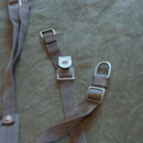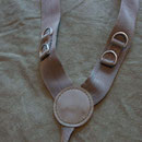 Das Koppeltragegestellt dient dazu die Sturmgepäcktaschen zu transportieren und diese dann mit den Enden des Koppeltragegestells und der Koppelschlaufen am Felddienstkoppel zu befestigen. Das Koppeltragegestell besteht aus grauem Kunstfaser Gurtband, breiterem Gurtband als Schulterauflage und wurde dann mit den schmaleren Ende zur Befestigung am Koppel und der Sturmgepäcktasche vernietet.