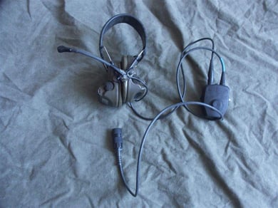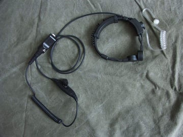 Es besteht die Möglichkeit für die Motorola Saber Funkgeräte unterschiedliche Headsets zu verwenden. Hier nur zwei Beispiele. Das erste ist ein Headset nach militärischen Erfordernissen mit einem Kehlkopfmikrofon.