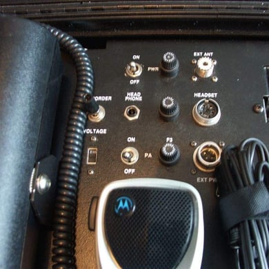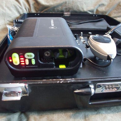 Die Motorola Mobile Base wurde von der US Army für Fahrzeuge angeschafft, welche nicht über eine eingebaute Funkanlage verfügen, wie z. B. zivile Fahrzeuge Pick Ups und Vans welche im Kosovo zum Einsatz kamen. Die Motorola Mobile Base kann einfach über den Zigarettenanzünder in jedem beliebigen Fahrzeug an das Bordnetz angeschlossen werden und mittels einer Magnetfußantenne betrieben werden. Ebenso ist es möglich die Mobile Base an das 220 und 115 Volt Stromnetz anzuschließen. Die Mobile Base ist für die Motorola Saber Geräte gedacht, so kann man das Saber Funkgerät in die Aufnahme einsetzen, zuvor wird der Kanal im Saber Funkgerät eingestellt, weil man die Kanaleinstellung zumindest beim Saber II und III nach dem Einsetzen in die Halterung nicht mehr sehen kann. Das Funkgerät wird in die Halterung eingesetzt, dann arretiert und eingeschaltet, wenn die Mobile Base an das Bordnetz und die Antenne angeschlossen ist wird sie eingeschaltet. Jetzt ist die Mobile Base betriebsbereit, es kann die Lautstärke reguliert werden, ankommende Funksprüche können über einen externen Lautsprecher ins Fahrzeug innere geleitet werden und Funksprüche können durch ein an der Mobile Base befestigtes Mikrofon abgesetzt werden. Die Mobile Base verfügt über einen eingebauten Verstärker.  Weiterhin besteht die Möglichkeit ein Headset und einen Rekorder anzuschließen. Die Mobile Base ist fest in einen Zero Halliburton Metallkoffer eingebaut.