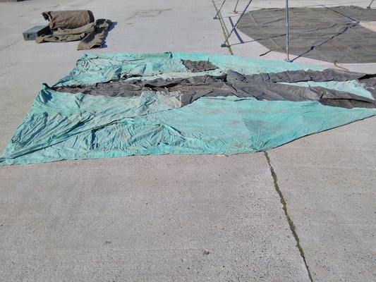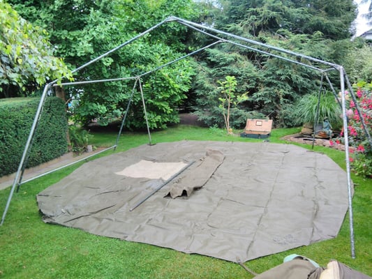 Dreieckszeltbahn tarn erstes Muster