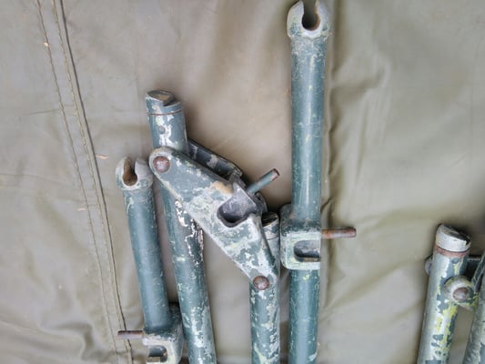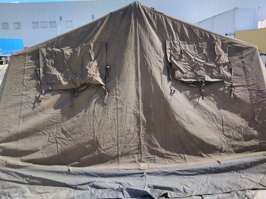 Das hier zu sehende Zelt wurde aus verschiedenen Zeltsätzen zusammengestellt, so kommt es auch zu den verschiedenen Herstellungsjahren, wann es zu dieser Zusammenstellung kam, ist mir nicht bekannt.
