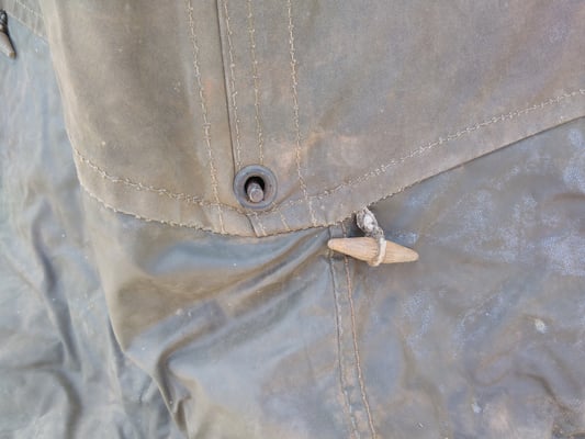 Der Zeltboden verfügt über einen aufgenähten feuerfesten Zusatz, damit auf dieser Stelle der Zeltofen aufgestellt werden kann.