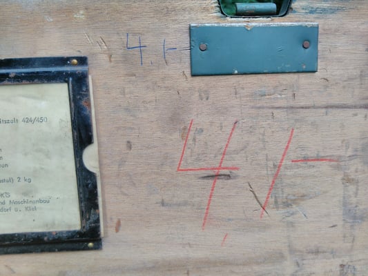 Die Transportkiste für das Zubehör war einer 4./- (Hundertschaft) zugeordnet, welche geht aus der Beschriftung leider nicht hervor.