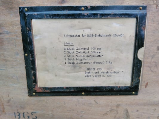 Das Innenzelt stammt von der 6. / GSG 4 also der 6. Hundertschaft, der GSA II (Eschwege), der Grenzschutzgruppe 4 ( Fuldatal) des Grenzschutzkommandos Mitte ( Kassel) das taktische Zeichen der Hundertschaft war 406 auf rotem Kreis.