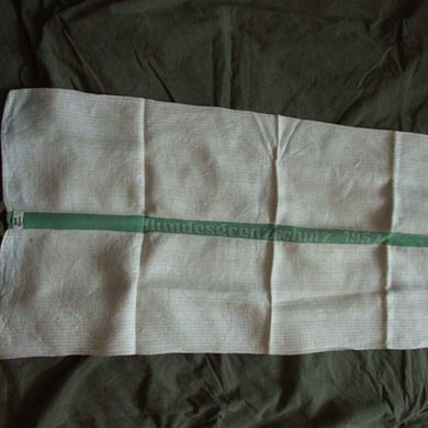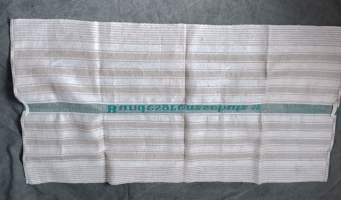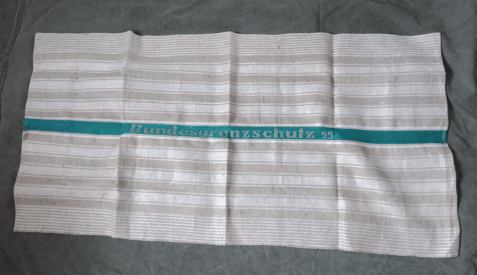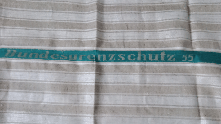 Dies ist ein Geschirrhandtuch mit aufgebrachtem Bndesgrenzschutz Schriftzug und dem Herstellungsjahr 1957