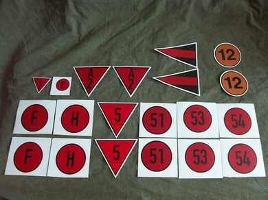 Auf den Fotos seht Ihr von oben nach unten und von links nach rechts die Taktischen Zeichen folgender Einheiten: