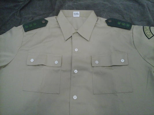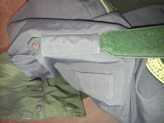 2. von alten Bundesgrenzschutzuniformteilen die noch weißen Bundesgrenzschutz Schriftzüge und von den Dienstanzügen die Kragenspiegel entfernt, um diese weiter nutzen zu können.