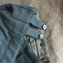 Der Mehrzweckanzug moosgrün Winter, Thermoanzug, entspricht im wesentlichen dem normalen Mehrzweckanzug. Die Unterschiede sind, ein Reißverschluß zum Verschließen der Jacke, zusätzlich zu den Knöpfen, einem eingearbeitetem Futter und statt der eingearbeiteten Bänder in den Hosenbeinen wurden hier Gummibänder verwendet.