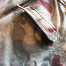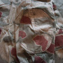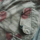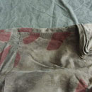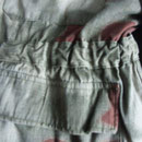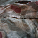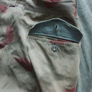 Die Überhose im Tarndruck ist, wie die Schlupfjacke, so geschnitten, daß sie über der Tuchuniform getragen werden konnte. Die Hose verfügt über zwei seitliche Einschubtaschen, welche mit einer Taschenklappen und jeweils zwei Knöpfen verschlossen werden können. Zwei seitlich auf den Hosenbeinen aufgesetzte Taschen, welche mittels einer Taschenklappe und jeweils zwei Knöpfen verschlossen werden können. Zwei Gesäßtaschen, welche mittels einer Taschenklappe und jeweils einem Knopf verschlossen derden können. Weiterhin verfügt die Hose über Befestigungsmöglichkeiten für Hosenträger, einem Gürtel, seitliche Verstellung der Bundweite und Bändern in den Beinen um die Hose über den damals üblichen Schaftstiefeln tragen zukönnen. Die Bänder können bei Nichtbenutzung angeknöpft werden. Vorne wird die Hose geknöpft. Die Hose verfügt weiterhin über eine Verstärkung , aufgesetzter zusätzlicher Stoff, auf den Knien und der Sitzfläche.