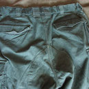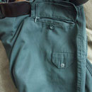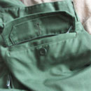 Die Einsatzhose grün entspricht im Schnitt der Überhose im Tarndruck Sumpftarnmuster. Die Hose kann an den Beinen mittels eingenähter Bänder zum Tragen über den Schaftstiefeln enger gestellt werden, hat Knie- und Gesäßverstärkung, zwei Gesäßtaschen, zwei seitliche Einschubtaschen mit Taschenklappen und jeweils zwei Knöpfen, eine seitliche Durchgrifftasche mittels Knopf verschließbar rechts, Koppelschlaufen, Knöpfe zum Befestigen von Hosenträgern und zwei aufgesetzte Oberschenkeltaschen. In der rechten Oberschenkeltasche ist noch eine kleine Tasche für ein Taschenmesser eingenäht. Die Oberschenkeltaschen sind ebenfalls mit Knöpfen verschließbar.
