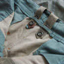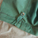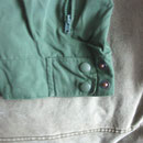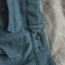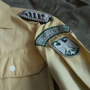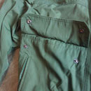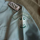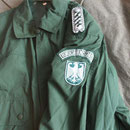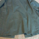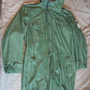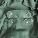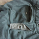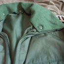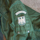 Der Parka in moosgrün wurde als Überziehjacke für die kalten Jahreszeiten oder auch mit herausgenommenem Futter als Nässeschutz verwendet. Der Parka in moosgrün lößte den Parka im Tarndruck nach Übernahme mehr polizeilicher Tätigkeiten durch den Bundesgrenzschutz ab.Der Parka verfügt über einen Reißverschluß, eine verdeckte Knopfleiste, zwei Brusttaschen, welche mittels jeweils zwei Knöpfen verschlossen werden können, einen Innentasche, welche mittels eines Knopfes verschlossen werden kann, zwei Einschubtaschen, welche mittels jeweils zwei Knöpfen verschlossen werden können, ein Ärmelbüro, welches mittels Klett und zwei Druckknöpfen verschlossen derwen kann und zur Aufbewhrung von Stiften , Radiergummi und oder Lineal gedacht ist. Weiterhin verfügt der Parka über eine Kaputze, welche mittels eines eingearbeiteten Bandes zusammengezogen werden kann, mittels Druckknopf bei nicht Benutzung enger gestellt werden und auch am Rücken befestigt werden kann. Außerdem kann die Taille mittels des eingearbeiteten Bandes eingestellt werden, das Futter ausgeknöpft werden, das untere Ende des parkas ebenfalls mittels eines eingearbeiteten Bandes engergestellt werden oder auch wenn der Parka nach innen hochgeschlagen wurde zusammengebunden werden.Die Ärmel können ebenfalls verengt werden, auch das Einknöpffutter kann den Ärmel nocheinmal seperat zum Parka verengt werden In diesem Fall kann der Parka, um über mehr Beinfreiheit zuverfügen nach innen wie folgt hochgeschlagen werden. Bie geöffnetem Parka schlägt man diesen bis in etwa auf Höhe der Einschubtaschen um, zieht dann das unten eingearbeitete Band soweit zusammen, daß es nicht mehr nach unten rutschen kann und sichert es mittels einer Schleife, dann wird der reißverschluß und im Anschluß daran die verdeckte Knopfleiste geschlossen. Jetzt kann der Parka als kurze Jacke mit Kapuze und erhöhter Beinfreiheit getragen werden.