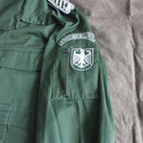 Diese Jacke ist wie der Parka im sumpftarn Muster gefertigt. Die Jacke verfügt über zwei Brusttaschen, zwei große Taschen vorn, welche über eingenähte Magazintaschen für Magazine für das G 1 (FN FAL) verfügen, eine Verbandpäckchentasche innen, eine Innentasche. Alle Taschen können mittels angenähten Knöpfen verschlossen werden. Die Jacke verfügt weiterhin über eine abgedeckte Knopfleiste, keinen Reißverschluß, ein Ärmelbüro, welches mittels Klett und zwei Druckknöpfen verschlossen werden kann. Das Ärmelbüro ist zur Aufbewahrung von Stiften, einem Lineal und oder einem Radiergummi gedacht. Auf dem Deckel des Ärmelbüros ist der Bundesadler und der Bundesgrenzschutz Schriftbogen aufgenäht. Frühere Versionen der Jacke verfügten nur über den Bundesadler und noch eine abnehmbare Kaputze auf die später verzichtet wurde. Am Rücken sind zwei Metall D Ringe und zwei Schlaufen zur Befestigung von Kochgeschirr und Feldflasche bzw. des Brotbeutels angenäht. An den Seiten verfügt die Jacke über die schon seit vielen Jahren beim deutschen Militär verwendeten Kopelhaken um den Leibriemen einlegen zu können und damit den Leibriemen und die daran befestigte Ausrüstung in der gewünschten Position zu halten. Auf den Schultern ist eine zweite Stoffschicht aus beschichtetem Stoff zum Nässeschutz angenäht, darauf sind zwei Knöpfe und Schlaufen zur Befestigung der Schulterstücken angenäht. Das Koppeltragegestell wurde wie folgt zur Jacke getragen: der Y Riemen wird unter dem beschichten Stoff über die Schultern geführt, vorn in die auf den Leibriemen aufgeschobenen D Ringe der Magazintaschen eingehakt, sämtliche weitere benötigte Ausrüstung wird auf den Leibriemen geschlauft, am Rücken wird der Haken des Y Riemens unter den Leibriemen geführt und der Leibriemen in den Haken des Y Riemens eingelegt. Die Laschen des Brotbeutels werden unter dem Leibriemen durchgeführt, durch die beiden D Ringe der Jacke geführt und dann wieder zusammengeknöpft. Der Haken des Brotbeutels wird ebenfalls hinter dem Leibriemen durchgeführt und dann an den Leibriemen gehenkt. So ist dann die Jacke mit der gesamten am Leibriemen befindlichen Ausrüstung und Y Riemen verbunden und kann dann beim Ausziehen komplett so gelassen werden. Die Jacke kann mittels des eingenähten Bandes tailliert werden. Bei der Jacke mit der Kaputze besteht die Möglichkeit die Kaputze einfach abzuknöpfen. Auf den Ärmeln der Jacke sind an den Ellenbogen Verstärkungen aufgenäht. Die Ärmel können mittels angenähter Knöpfe verengt werden.