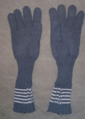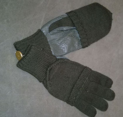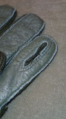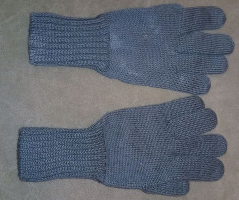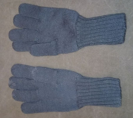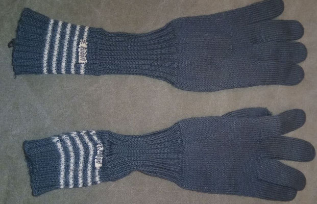 Die Handschuhe wurden aus dunkelgrün eingefärbtem Segeltuch hergestellt. Die Handschuhe sind leicht gefüttert, die Handfläche verfügt über einen Lederbesatz und obwohl als eine Art Fausthandschuh geschnitten verfügen die Handschuhe über einen extra Finger für die Zeigefinger um auch mit den Handschuhen die Waffen bedienen zu können.