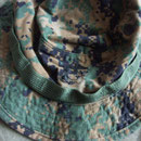 Dies ist die Schirmmütze die von Mannschaften und Unteroffizieren des United States Marine Corps zur Servie B getragen wird. Die Schirmmütze für Offiziere verfügt über einen anderen Sturmriemen und Mützendeckelstickereien und je nach Rang unterschiedlich auch über Schirmstickereien.
